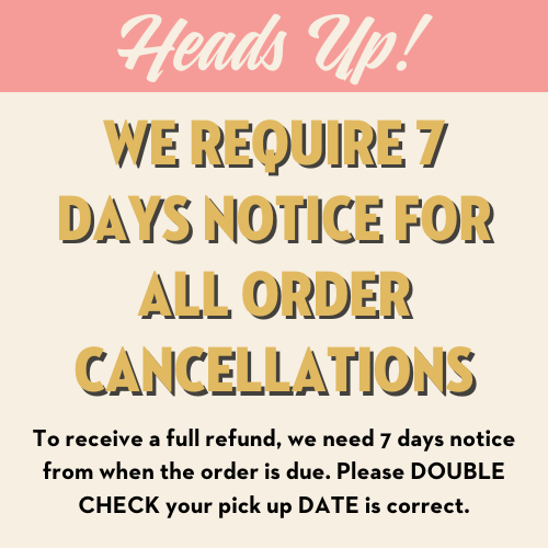 Please keep in mind that we are a from-scratch bakery and flavors are subject to change