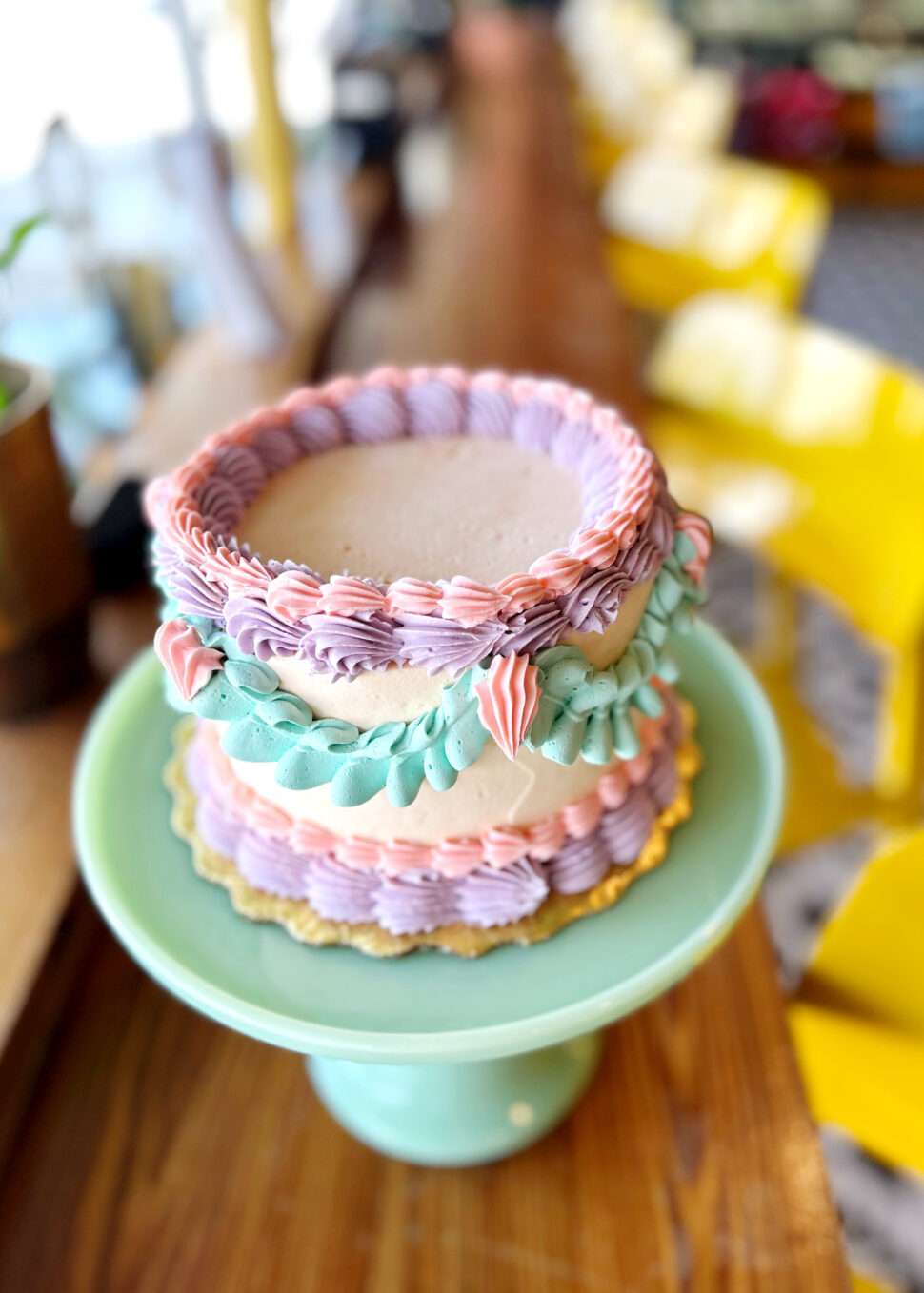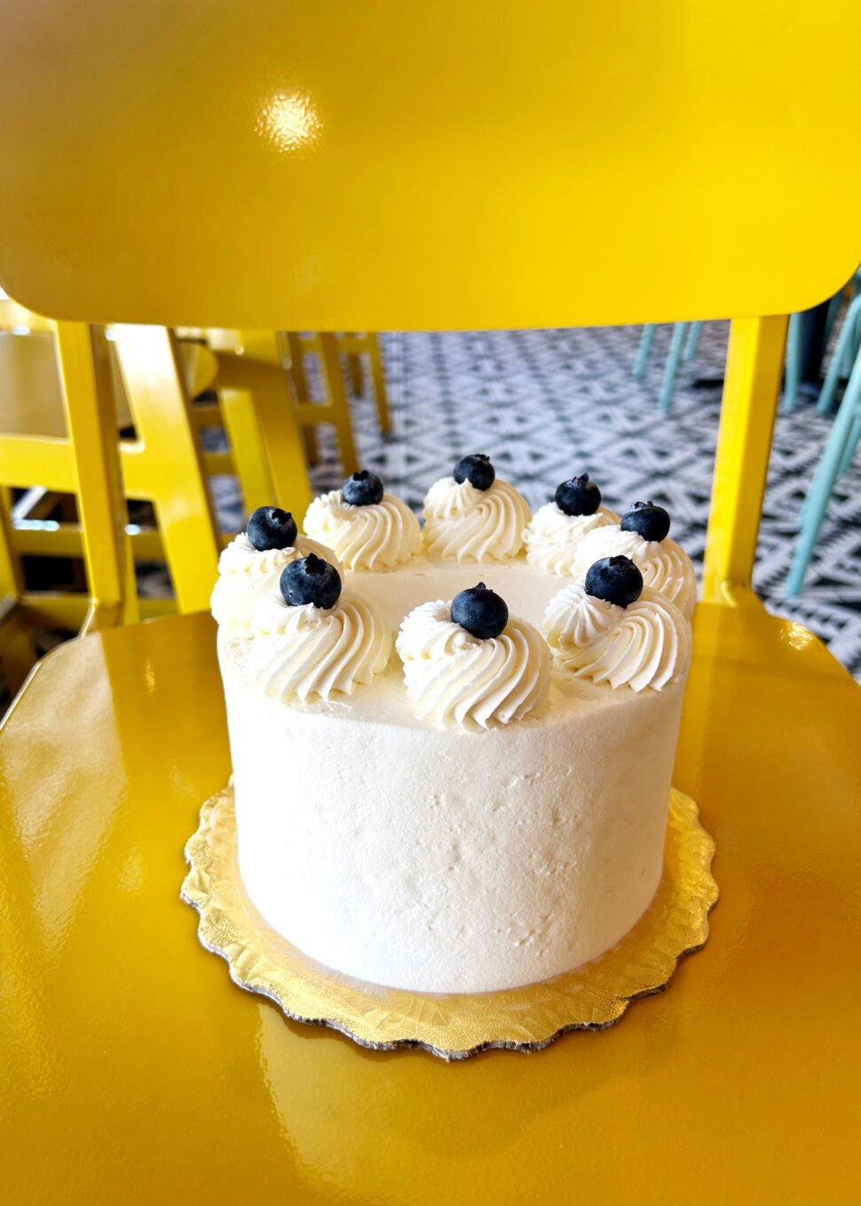 GF Blueberry cake iced and filled with lemon buttercream