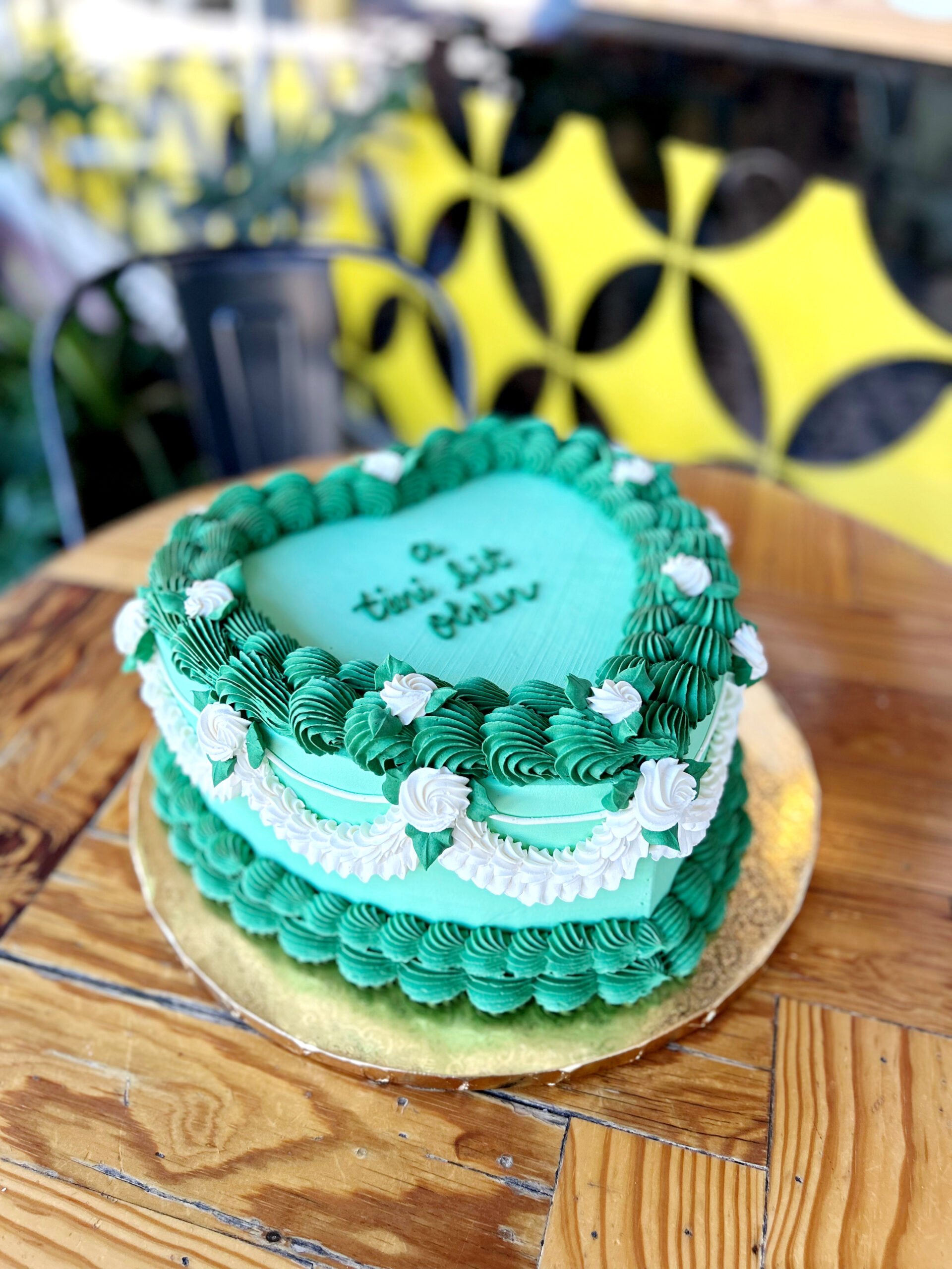 $0.00 Our Heart Lambeth Cakes consist of 3 layers of cake of your choice, 2 layers of filling of your choice, all iced in our fluffy vanilla buttercream. Enjoy! BASE PRICE IS $75.00. "*" indicates required fields 2tarts Heart Lambeth CakeCustom OrderSize*6 inch Heart (Serves 12)8 inch Heart (Serves 16)10 inch Heart (Serves 26)Gluten Free?*NoYesGluten Free Calc Price: $0.00 Cake and Filling Flavor*Carrot Cake/Cream Cheese IcingChocolate Cake/Oreo ButtercreamGerman Chocolate/Coconut Pecan CustardRed Velvet Cake/Cream Cheese IcingBlackberry Cake/Almond ButtercreamChocolate Cake/Chocolate ButtercreamChocolate Cake/Peanut Butter ButtercreamChocolate Cake/Raspberry JamChocolate Cake/Salted CaramelFunfetti/Vanilla ButtercreamItalian Cream Cake/Cream Cheese IcingLemon Cake/Lemon CurdLemon Cake/Raspberry JamStrawberry Cake/Lemon CurdStrawberry Cake/Strawberry ButtercreamVanilla Cake/Italian Meringue ButtercreamVanilla Cake/Strawberry JamVanilla/Vanilla ButtercreamButtercream Base Color* white brown (chocolate) light pink light orange light yellow light green light blue light purple hot pink orange yellow green blue purple dusty pink burnt orange coral golden yellow forest green dusty blue black burgundy Buttercream Border Color* white brown (chocolate) light pink light orange light yellow light green light blue light purple hot pink red yellow orange green blue purple coral dusty pink burnt orange golden yellow forest green dusty blue black burgundy Buttercream Piping Color* white brown (chocolate) light pink light orange light yellow light green light blue light purple hot pink red yellow orange green blue purple coral dusty pink burnt orange golden yellow forest green dusty blue black burgundy Buttercream Rose Color* white brown (chocolate) light pink light orange light yellow light green light blue light purple hot pink red yellow orange green blue purple coral dusty pink burnt orange golden yellow forest green dusty blue black burgundy Buttercream Leaf Color* white brown (chocolate) light pink light orange light yellow light green light blue light purple hot pink red yellow orange green blue purple coral dusty pink burnt orange golden yellow forest green dusty blue black burgundy Decorative Add-Ons (Optional)Add Edible Glitter?* No Yes Add Edible Image?* Yes No Upload Your Edible Image*Accepted file types: jpg, gif, png, pdf, heic, Max. file size: 100 MB.Message Type* Happy Birthday Banner Happy Anniversary Banner Custom Message Banner Custom Buttercream Message No Banner Custom Message* Pick-up Date* MM slash DD slash YYYY Pick-up Time*7:00am7:30am8:00am8:30am9:00am9:30am10:00am10:30am11:00am11:30am12:00pm12:30pm1:00pm1:30pm2:00pm2:30pm3:00pm3:30pm4:00pm4:30pm5:00pm5:30pm6:00pm6:30pm7:00pm7:30pm8:00pmTotal Add to cart Categories: Custom Order, Designer Cakes Tags: buttercream cake, Cake, customcake, heart cake Related products Lemon Meringue Cake $0.00 Select options Vanilla Strawberry Cake $0.00 Select options Strawberry Lemon Cake $0.00 Select options Mint Chocolate Cake $0.00 Select options