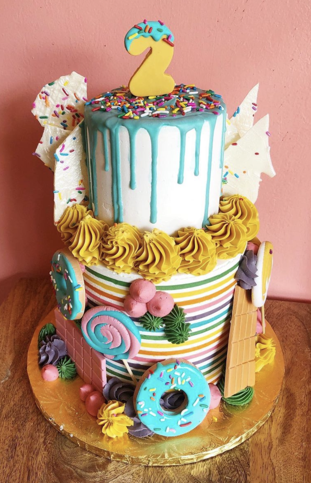 $0.00 Our Candy Land Cake comes 3 layers of cake and 2 layers of filling, iced in vanilla buttercream and decorated with fondant candy. "*" indicates required fields Candy Land CakeCustom OrderSize*4 inch Round (Serves 4)6 inch Round (Serves 8-12)8 inch Round (Serves 16)10 inch Round (Serves 26)4 inch/6 inch (Serves 18)6 inch/ 8 inch (Serves 28)8 inch/10 inch (Serves 42)Gluten Free?*NoYesGluten Free Calc Price: $0.00 Cake and Filling Flavor*Carrot Cake/Cream Cheese IcingChocolate Cake/Oreo ButtercreamGerman Chocolate/Coconut Pecan CustardRed Velvet Cake/Cream Cheese IcingBlackberry Cake/Almond ButtercreamChocolate Cake/Chocolate ButtercreamChocolate Cake/Peanut Butter ButtercreamChocolate Cake/Raspberry JamChocolate Cake/Salted CaramelFunfetti/Vanilla ButtercreamItalian Cream Cake/Cream Cheese IcingLemon Cake/Lemon CurdLemon Cake/Raspberry JamStrawberry Cake/Lemon CurdStrawberry Cake/Strawberry ButtercreamVanilla Cake/Italian Meringue ButtercreamVanilla Cake/Strawberry JamVanilla/Vanilla ButtercreamDecorative Add-Ons (Optional)Custom Fondant Name and Number*Pick-up Date* MM slash DD slash YYYY Pick-up Time*7:00am7:30am8:00am8:30am9:00am9:30am10:00am10:30am11:00am11:30am12:00pm12:30pm1:00pm1:30pm2:00pm2:30pm3:00pm3:30pm4:00pm4:30pm5:00pm5:30pm6:00pm6:30pm7:00pm7:30pm8:00pmTotal Add to cart Categories: Custom Order, Designer Cakes Related products Strawberry Lime Cake $0.00 Select options Blackberry Almond Cake $0.00 Select options Turtle Chocolate Cake $0.00 Select options Mint Chocolate Cake $0.00 Select options