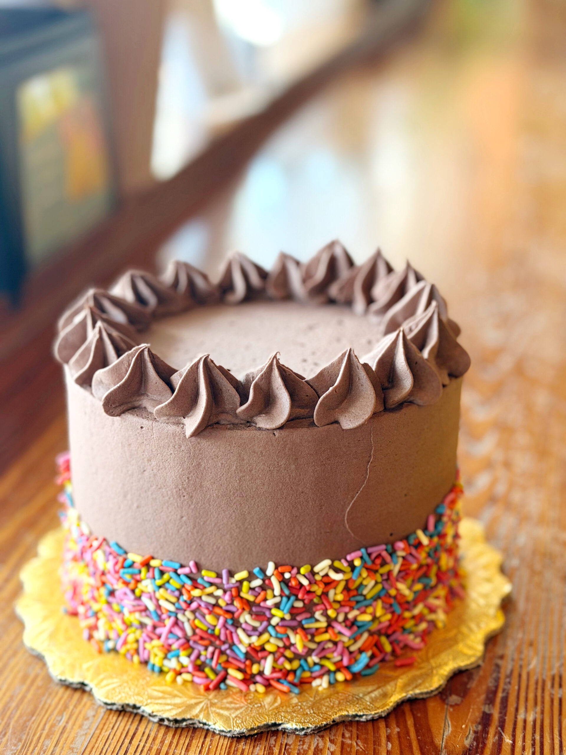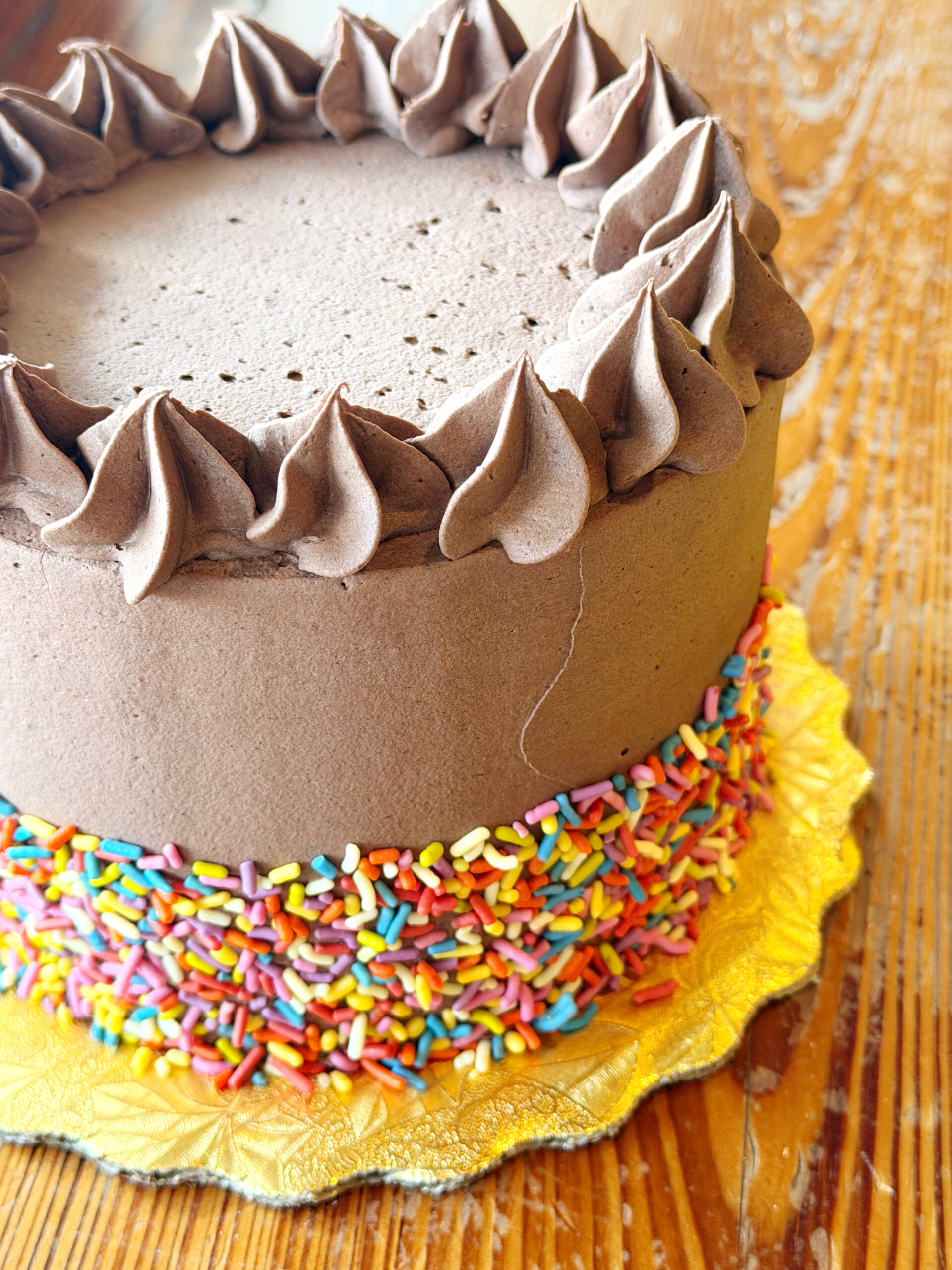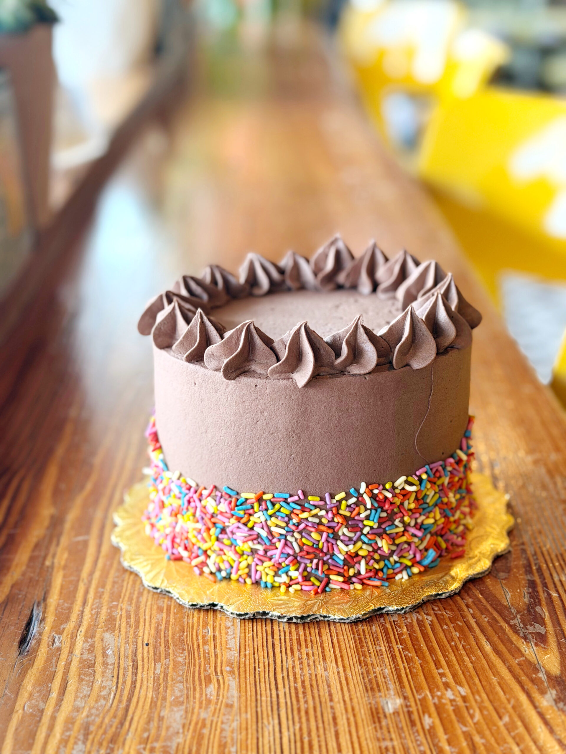 $0.00 Our famous GF Texas Sheet cake made with coconut oil and iced in our silky Vegan chocolate buttercream, decorated with Natural Dye Rainbow sprinkles. "*" indicates required fields Classic Chocolate Cake (V)(GF)Custom OrderSize*4-inch Round (Serves 4)6-inch Round (Serves 8-12)8-inch Round (Serves 16)10-inch Round (Serves 26)1/4 Sheet (Serves 20)1/2 Sheet (Serves 40)Decorative Add-Ons (Optional)Message Banner Type* Happy Birthday Banner Happy Anniversary Banner Custom Message Banner No Banner Custom Message*Pick-up Date* MM slash DD slash YYYY Pick-up Time*7:00am7:30am8:00am8:30am9:00am9:30am10:00am10:30am11:00am11:30am12:00pm12:30pm1:00pm1:30pm2:00pm2:30pm3:00pm3:30pm4:00pm4:30pm5:00pm5:30pm6:00pm6:30pm7:00pm7:30pm8:00pmTotal Add to cart Categories: Signature Cakes, Custom Order, Gluten and Dairy Free Related products Vanilla Butter Cake $0.00 Select options Strawberry Lemon Cake $0.00 Select options Vanilla Strawberry Cake $0.00 Select options Peanut Butter Chocolate Cake $0.00 Select options