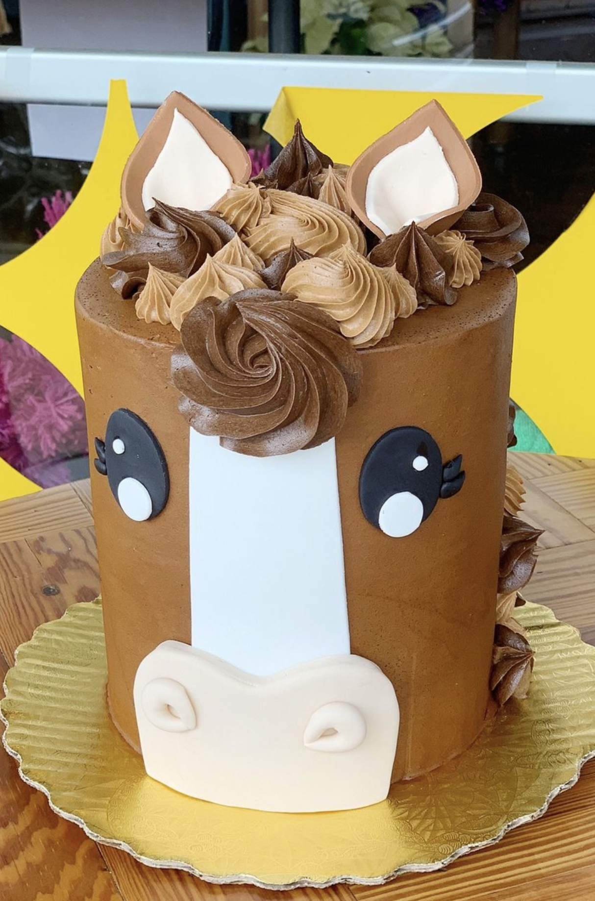 $0.00 Our Horse Cake comes with 4 layers of cake and 3 layers of filling, all iced in vanilla buttercream. Decorated like a horse with a buttercream base and fondant details. "*" indicates required fields Horse CakeCustom OrderSize*4 inch Round (Serves 6)6 inch Round (Serves 12-14)8 inch Round (Serves 18-20)10 inch Round (Serves 25-30)Gluten Free?*NoYesGluten Free Calc Price: $0.00 Cake and Filling Flavor*Carrot Cake/Cream Cheese IcingChocolate Cake/Oreo ButtercreamGerman Chocolate/Coconut Pecan CustardRed Velvet Cake/Cream Cheese IcingBlackberry Cake/Almond ButtercreamChocolate Cake/Chocolate ButtercreamChocolate Cake/Peanut Butter ButtercreamChocolate Cake/Raspberry JamChocolate Cake/Salted CaramelFunfetti/Vanilla ButtercreamItalian Cream Cake/Cream Cheese IcingLemon Cake/Lemon CurdLemon Cake/Raspberry JamStrawberry Cake/Lemon CurdStrawberry Cake/Strawberry ButtercreamVanilla Cake/Italian Meringue ButtercreamVanilla Cake/Strawberry JamVanilla/Vanilla ButtercreamDecorative Add-Ons (Optional)Custom Fondant Name and Number* Pick-up Date* MM slash DD slash YYYY Pick-up Time*7:00am7:30am8:00am8:30am9:00am9:30am10:00am10:30am11:00am11:30am12:00pm12:30pm1:00pm1:30pm2:00pm2:30pm3:00pm3:30pm4:00pm4:30pm5:00pm5:30pm6:00pm6:30pm7:00pm7:30pm8:00pmTotal Add to cart Categories: Custom Order, Designer Cakes Related products Lemon Meringue Cake $0.00 Select options Berry Chantilly Cake $0.00 Select options Chocolate Raspberry Cake $0.00 Select options Italian Cream Cake $0.00 Select options