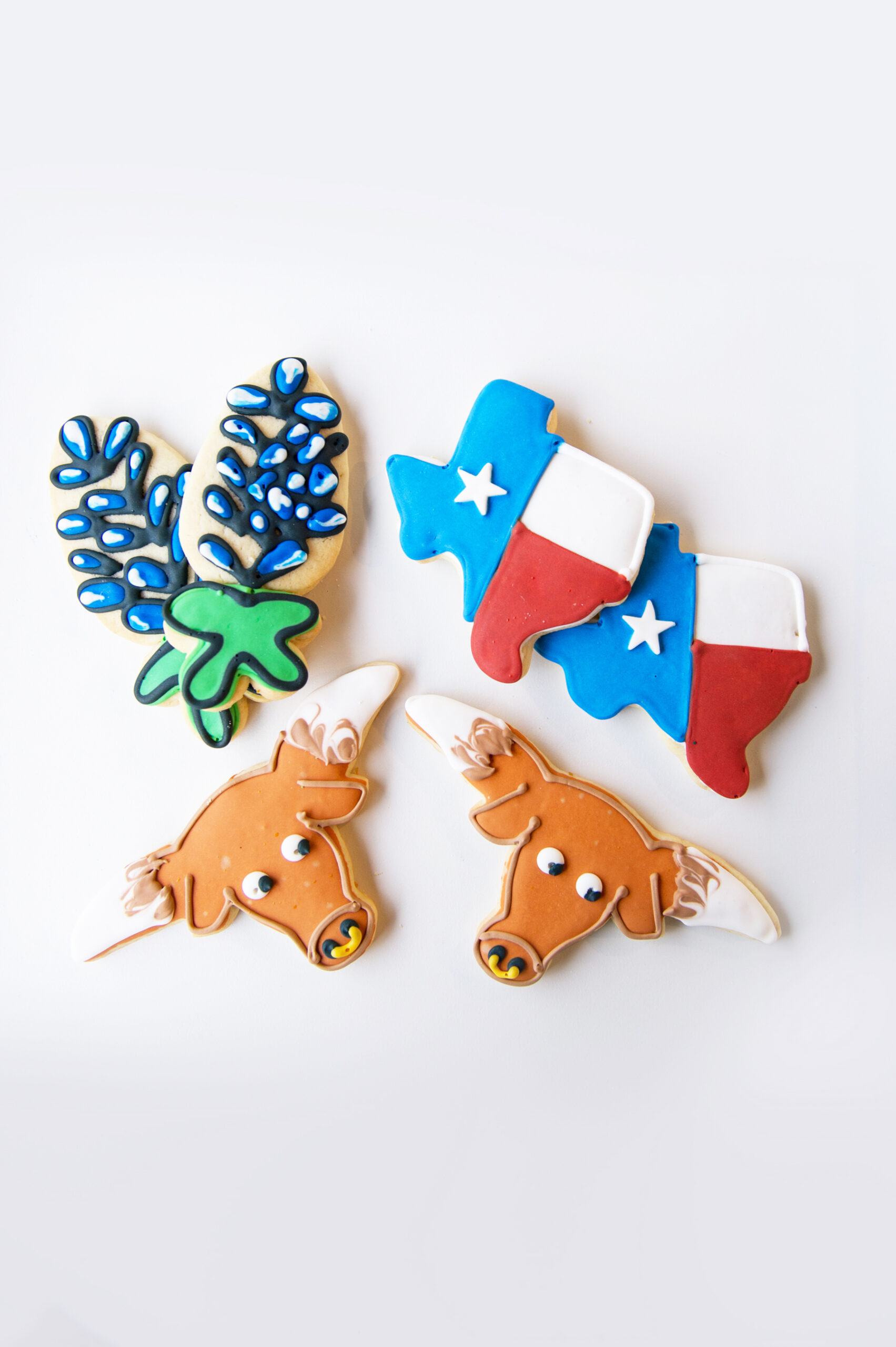 $0.00 God Bless Texas! This Texas set comes with 4 Texas cookies, 4 longhorn cookies, and 4 bluebonnet cookies. "*" indicates required fields Texas Cookie SetCustom OrderQuantity*1 Dozen Cookies2 Dozen Cookies3 Dozen CookiesAdd individual packaging?*No packaging12 Cellophane bag with matching ribbon24 Cellophane bag with matching ribbon36 Cellophane bag with matching ribbon48 Cellophane bag with matching ribbonPick-up Date* MM slash DD slash YYYY Pick-up Time*7:00am7:30am8:00am8:30am9:00am9:30am10:00am10:30am11:00am11:30am12:00pm12:30pm1:00pm1:30pm2:00pm2:30pm3:00pm3:30pm4:00pm4:30pm5:00pm5:30pm6:00pm6:30pm7:00pm7:30pm8:00pmTotal Add to cart Categories: Cookies, Custom Order Tags: bluebonnet cookies, texas, texas cookies Related products Chocolate Lovers Cake $0.00 Select options Classic Buttercream Cake $0.00 Select options Blackberry Almond Cake $0.00 Select options Cookies and Cream Cake $0.00 Select options